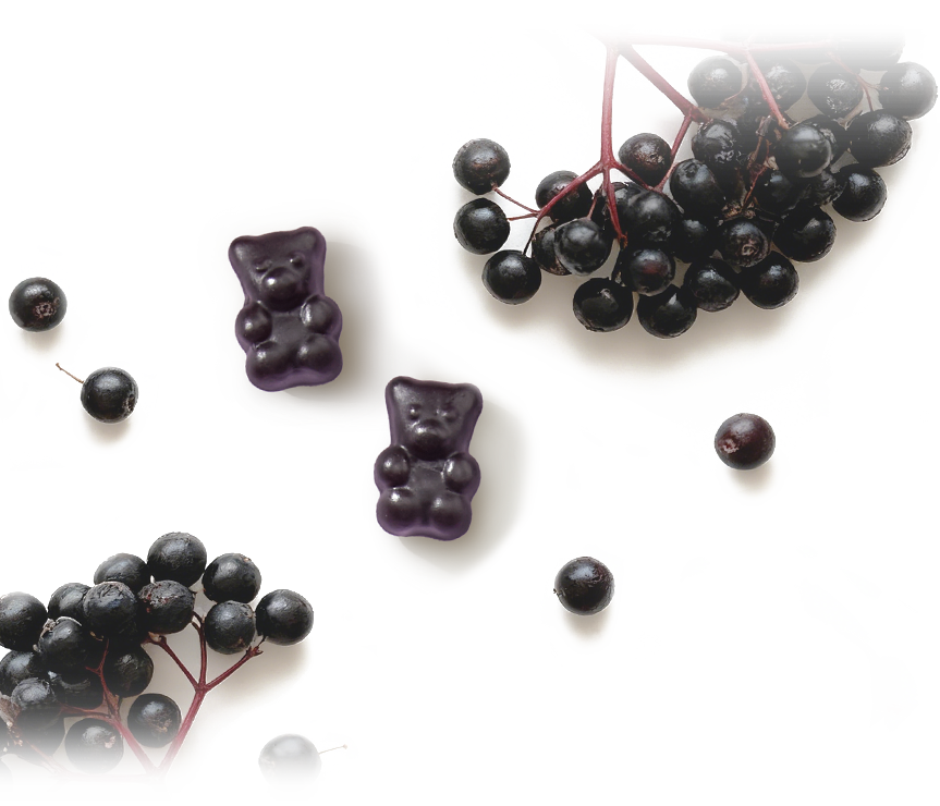 The main ingredient of our immune gummies is Elderberry Extract. Elderberry fruits are an excellent source of anthocyanins, vitamins A and C and a good source of calcium, iron and vitamin B6 which activate the activity of phagocytes and enhance the immune function of the body.